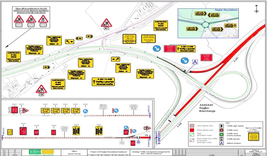 Following a mini bid competition exercise, ERH Ltd. were awarded this extensive contract scheme, which involved the resurfacing and strengthening of approximately 9.5km of both the east and westbound carriageways between the A40 Raglan Interchange and the Monmouth Tunnels. The project aimed to significantly enhance the road's structural integrity, improve safety, and provide a smoother driving experience for all road users.